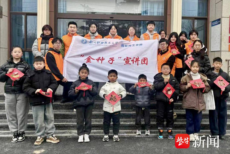 本周,学院“金种子”宣讲团在高邮市车逻镇学苑社区进行“非遗种子画送新年祝福”活动。社区小学生举着自己刚刚完成的“种福”作品,兴奋不已。